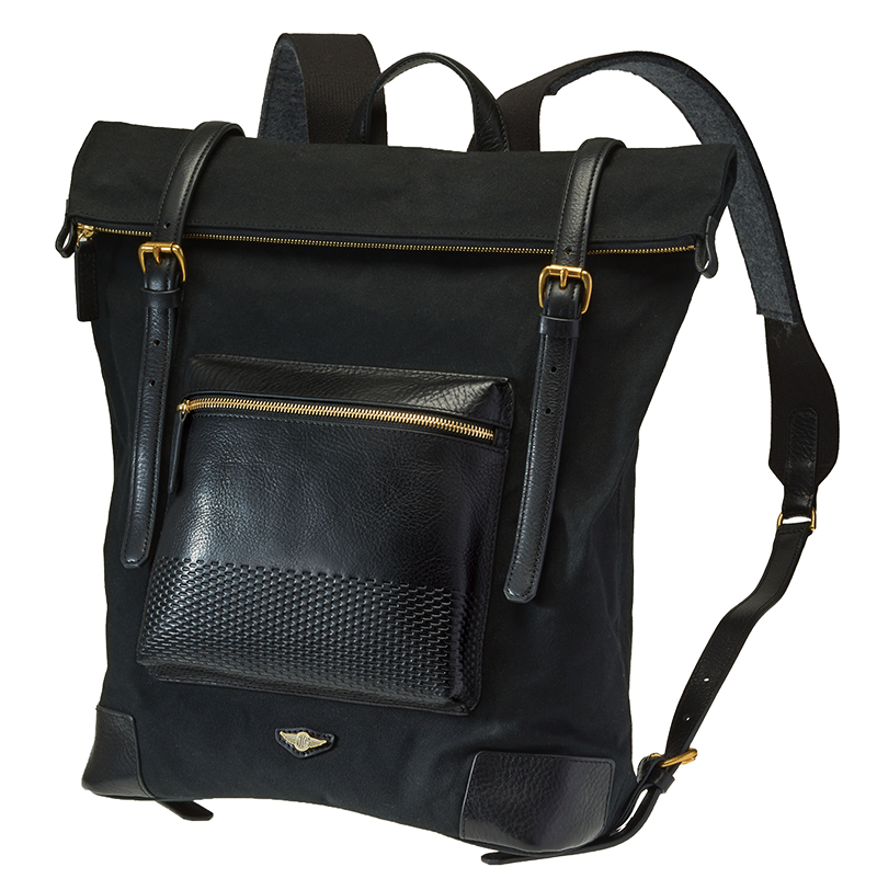 Impregnated with wax, pre-dyed No.9 (15oz) canvas by Kurashiki Canvas from Okayama prefecture becomes waterproof yet maintains its breathability, durability and suppleness as natural fabric. Oiled vachetta leather embossed with the original Neu interesse pattern is used for the front pocket, handles and trim. By designing to utilize the characteristics of each material, this series has achieved to create an image of classic British motorsport.
