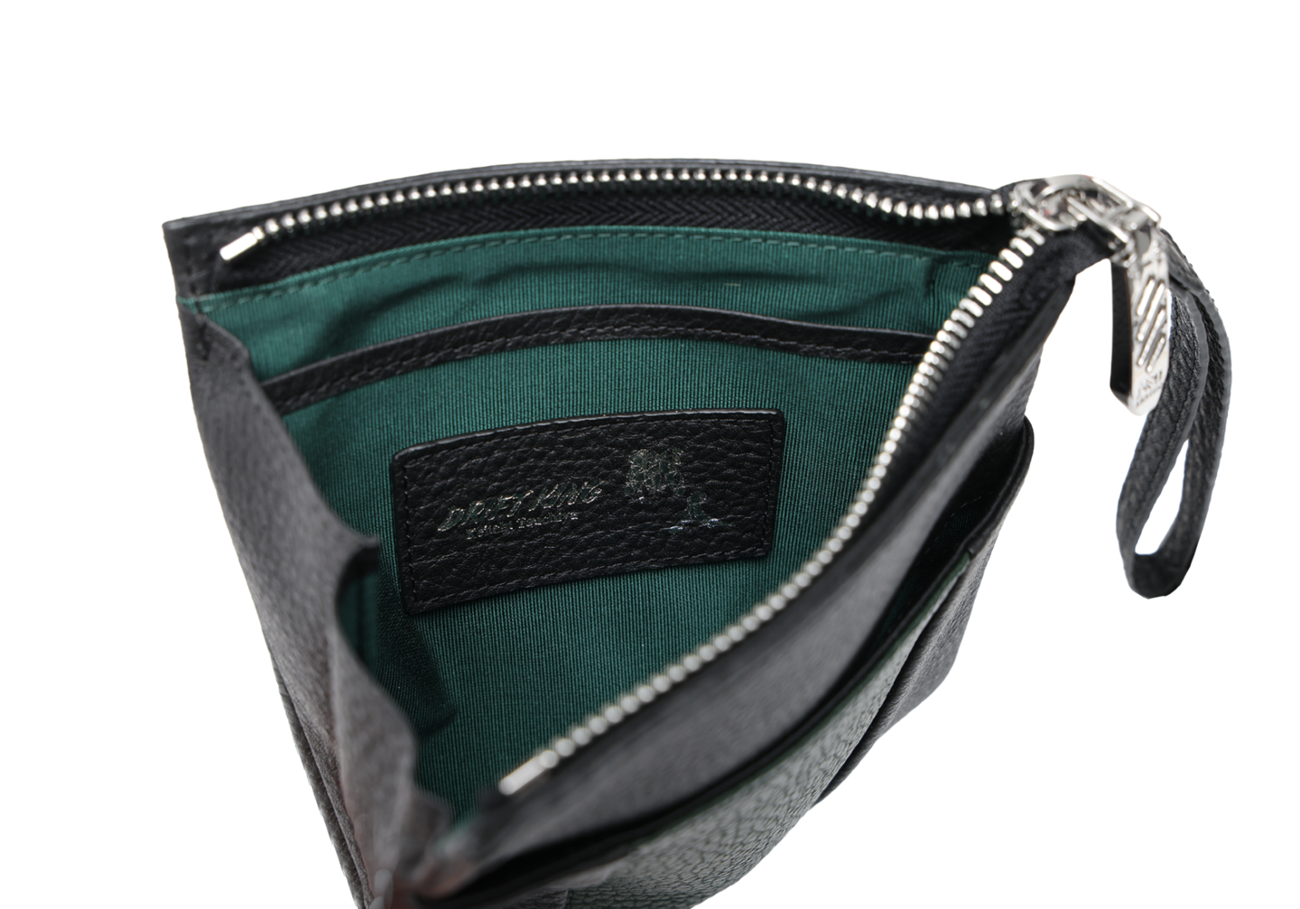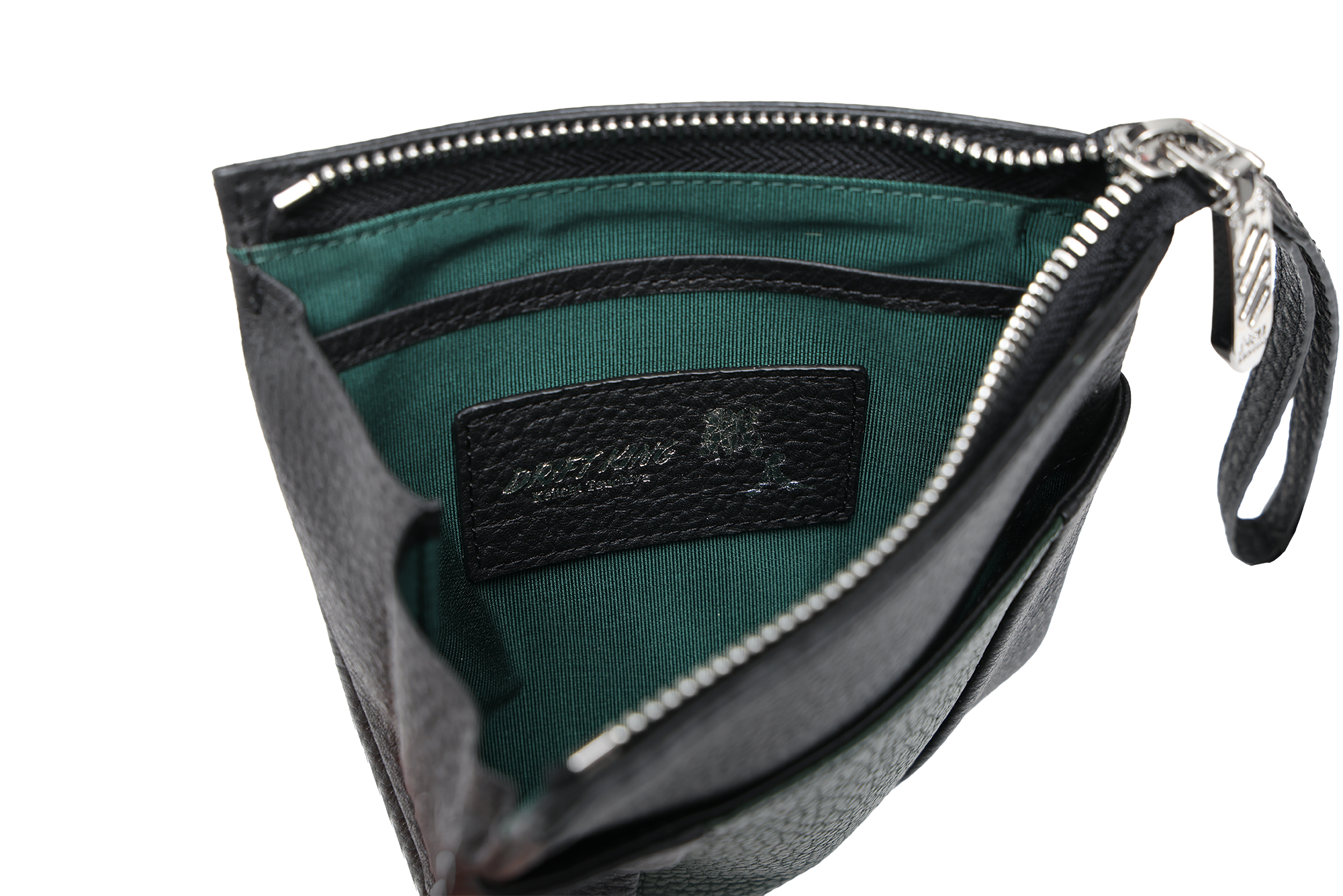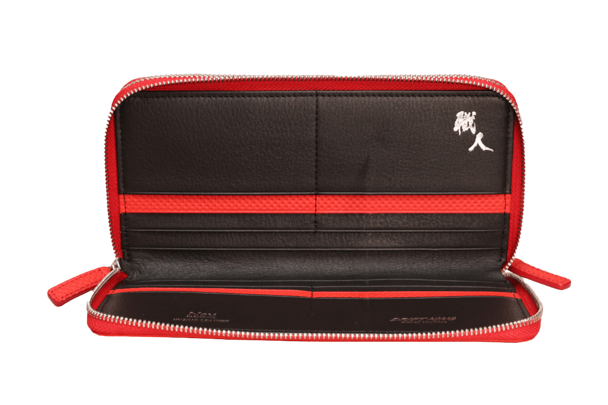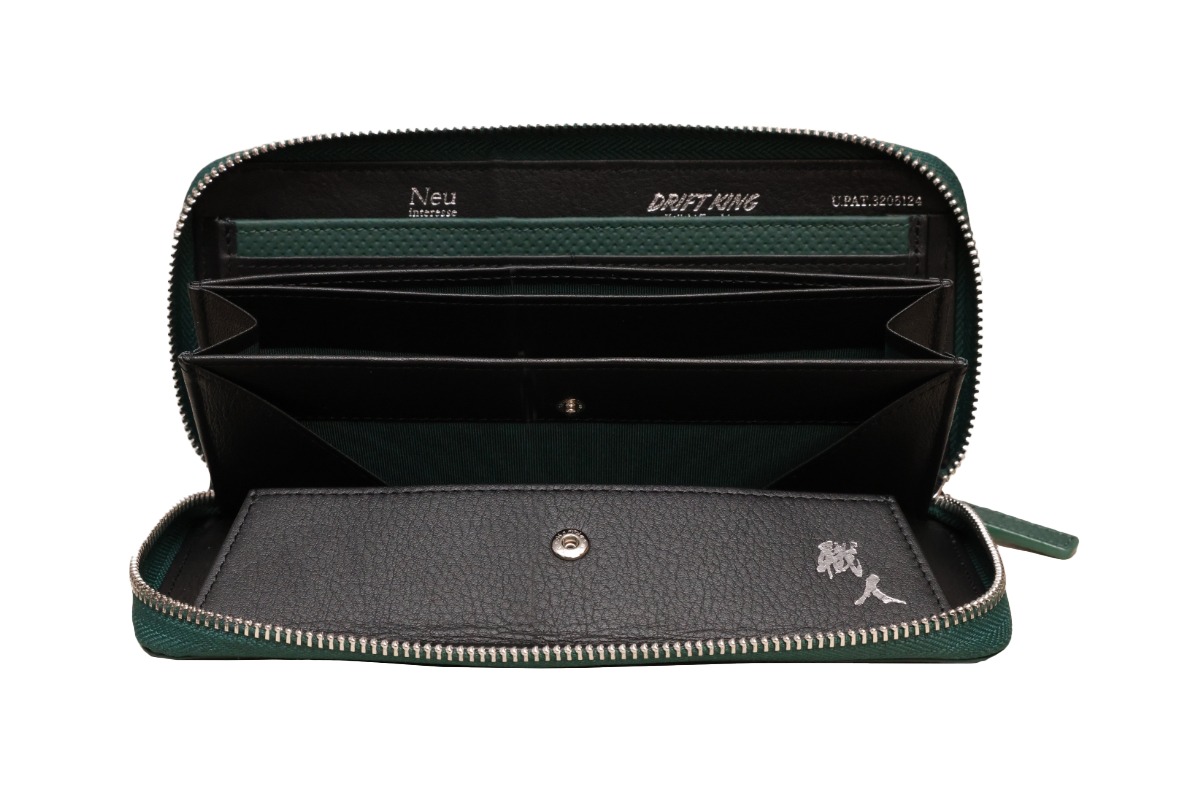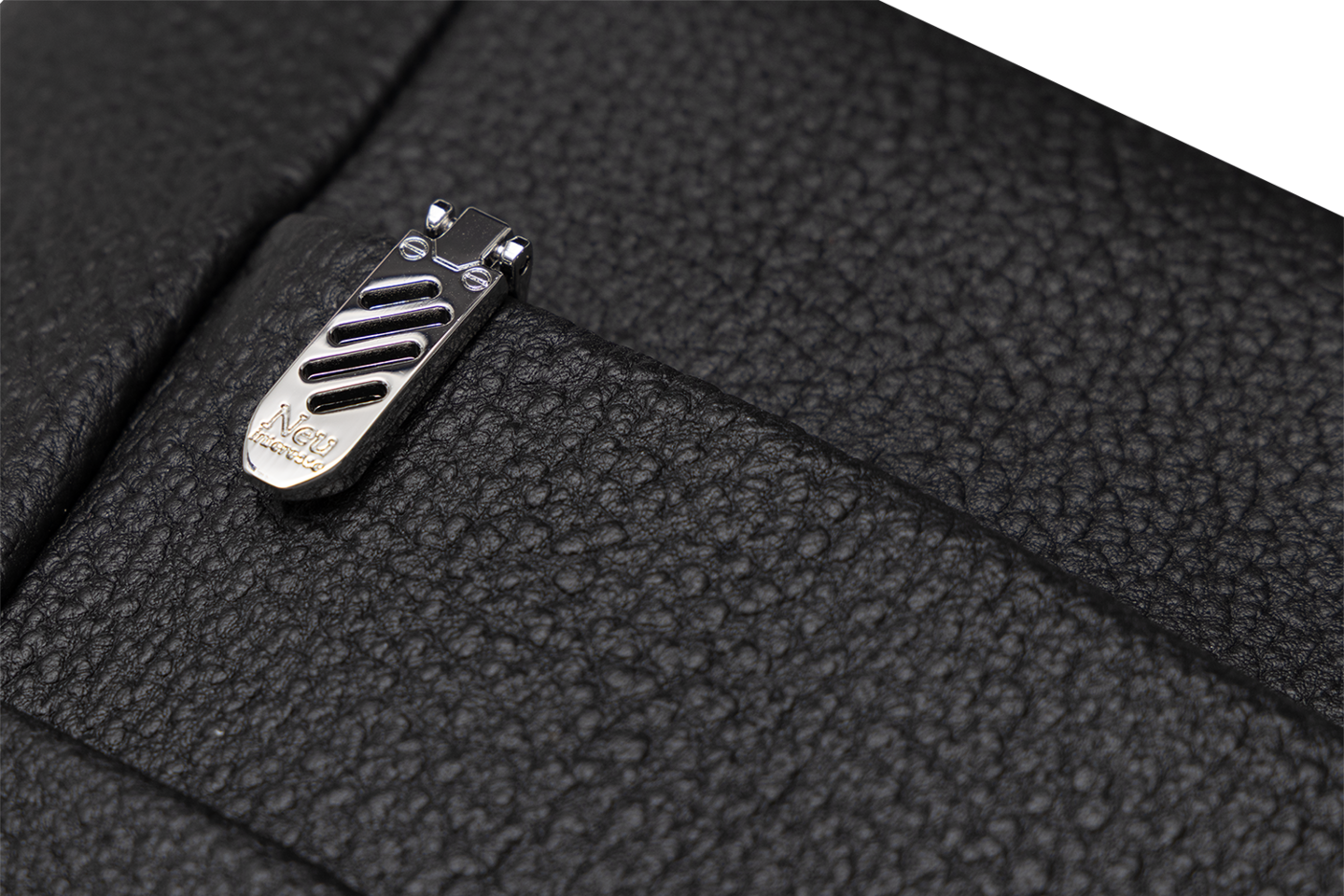 素材にはステアリングやシフトノブのカスタム、カーシートの張り替え等に使われるハイブリッドレザーを使用。鮮やかなカラーで柔軟性があり、耐摩耗性、耐光性、引裂強度、難燃性に優れ、ガソリンやワックス、整髪料などの払拭試験にも高い数値を記録している高機能素材です。内側には、肌触りの良い素上げ調の撥水レザーを使用。タッチ感の良い風合いが増す革とのコントラストで大人の雰囲気を表現しております。