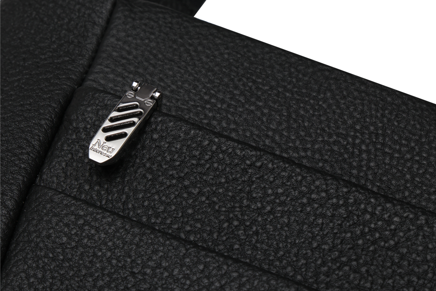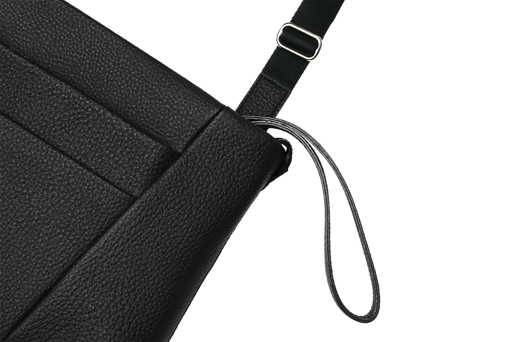 使用しているブラックカラーのレザーはハイエンドクラスの自動車内装に採用されているエンジエアリングレザー( シートレザー) です。国内で革柔された、ナチュラルなシボとしつとりとした触感が特徴的な素材で、擦れや傷に対して優れた耐久性を誇ります。土屋氏の愛車・AE86 のボンネットから着想を得たフロントの切り替えがデザインのアクセントとなった、大人の深みを持つ気品あふれる仕上がりとなっています。