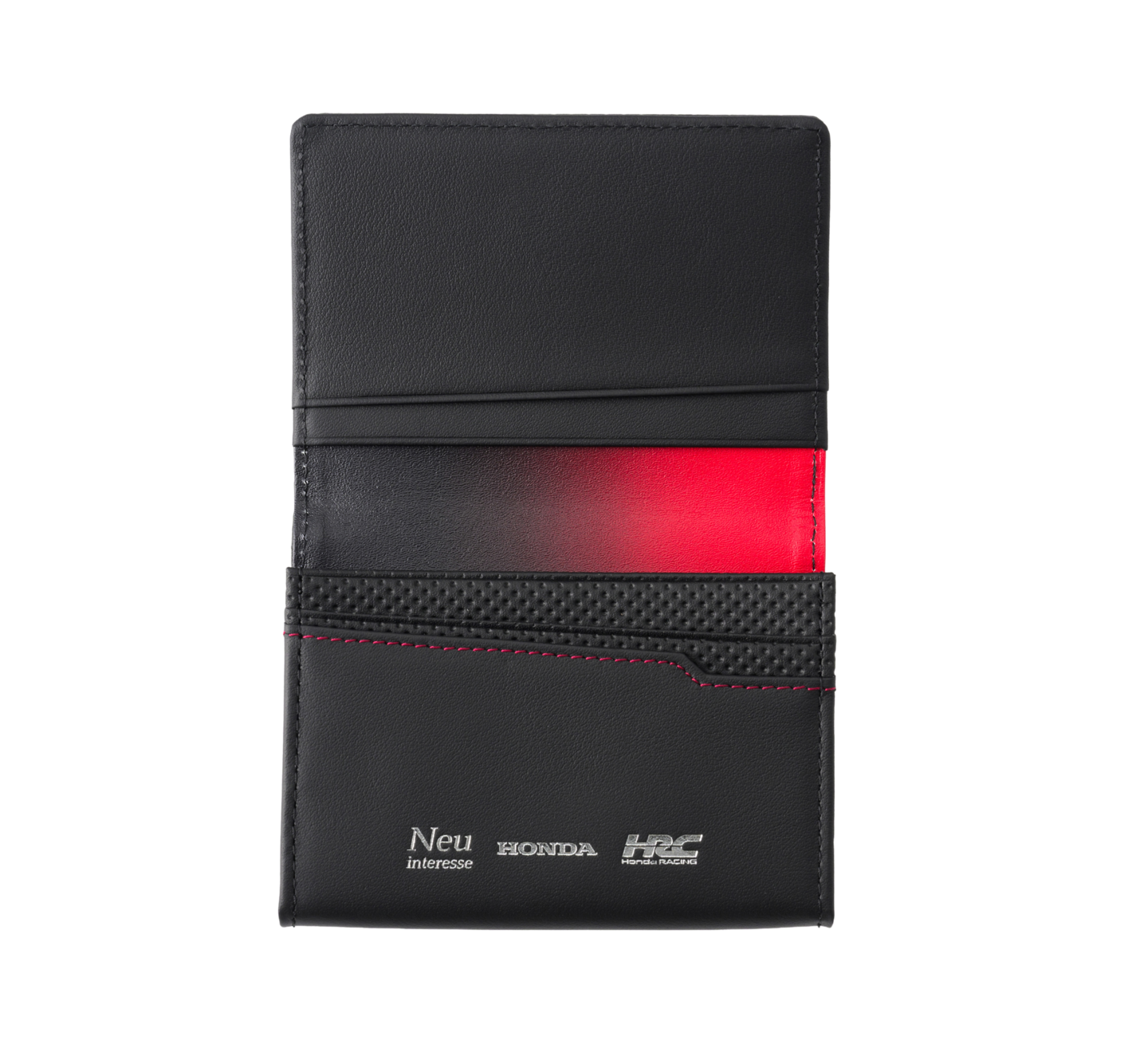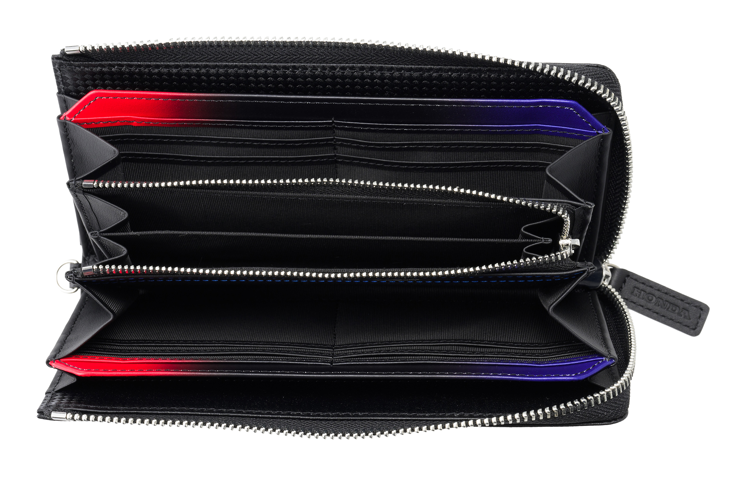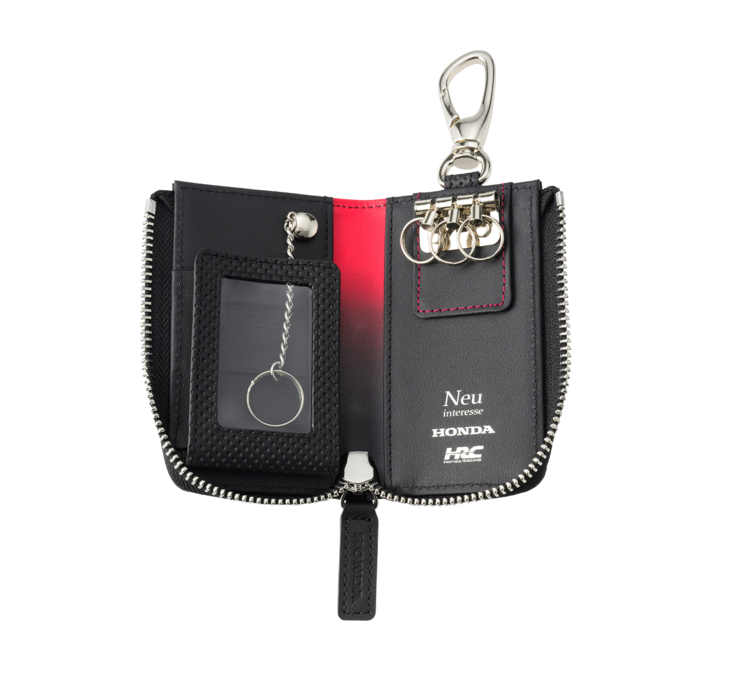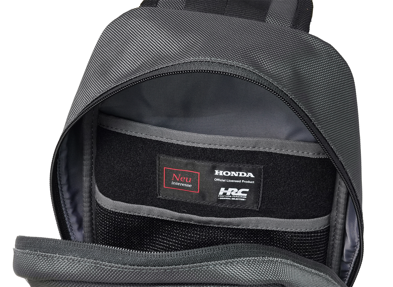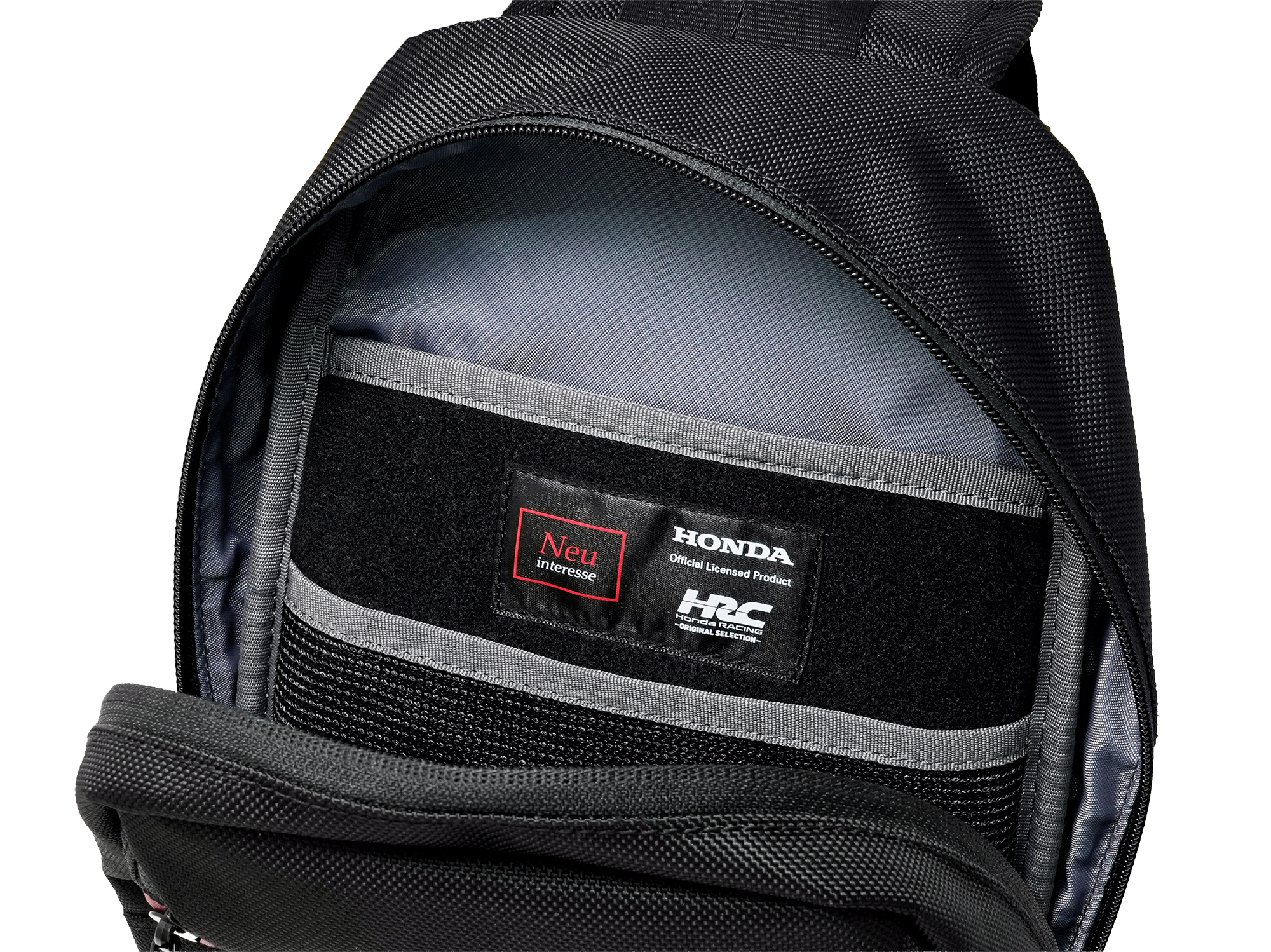 Officially licensed merchandise featuring the HRC logo, a symbol of Honda’s motorsports activities.Through Neu interesse items, the world of Honda driven by a passion for racing is expressed.For the leather items, the main material used is natural vegetable-tanned leather,processed with plant-derived agents by a domestic tannery certified by the Leather Working Group (LWG).Embossing with dimple and carbon patterns creates a refined yet sporty appearance.The selection of materials reflects a commitment to sustainability and environmental consideration.The bags feature a functional, streamlined design enhanced with zippers incorporating gradient prints.Constructed from high-density 1680D polyester with a water-repellent finish, they offer excellent durability and functionality.The gradient elements integrated into each design powerfully express the speed and dynamism of motorsports.