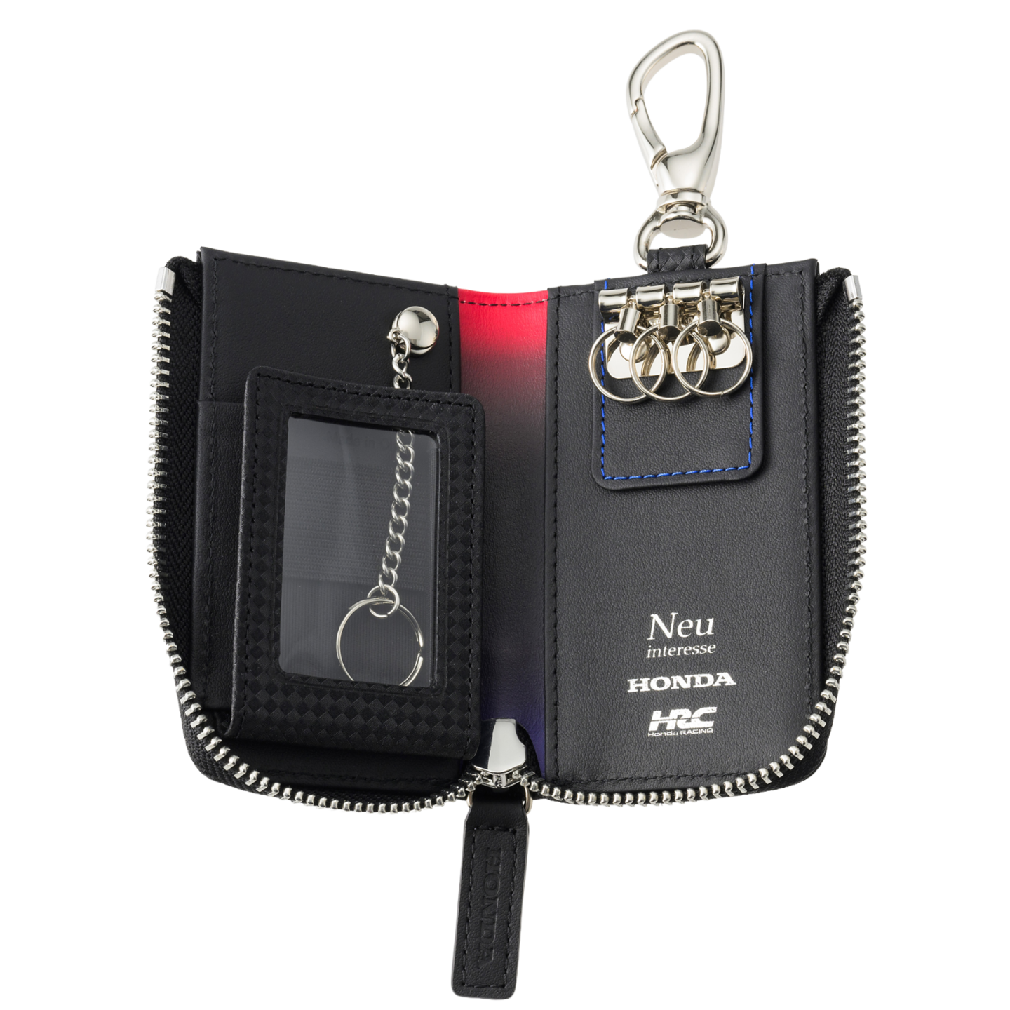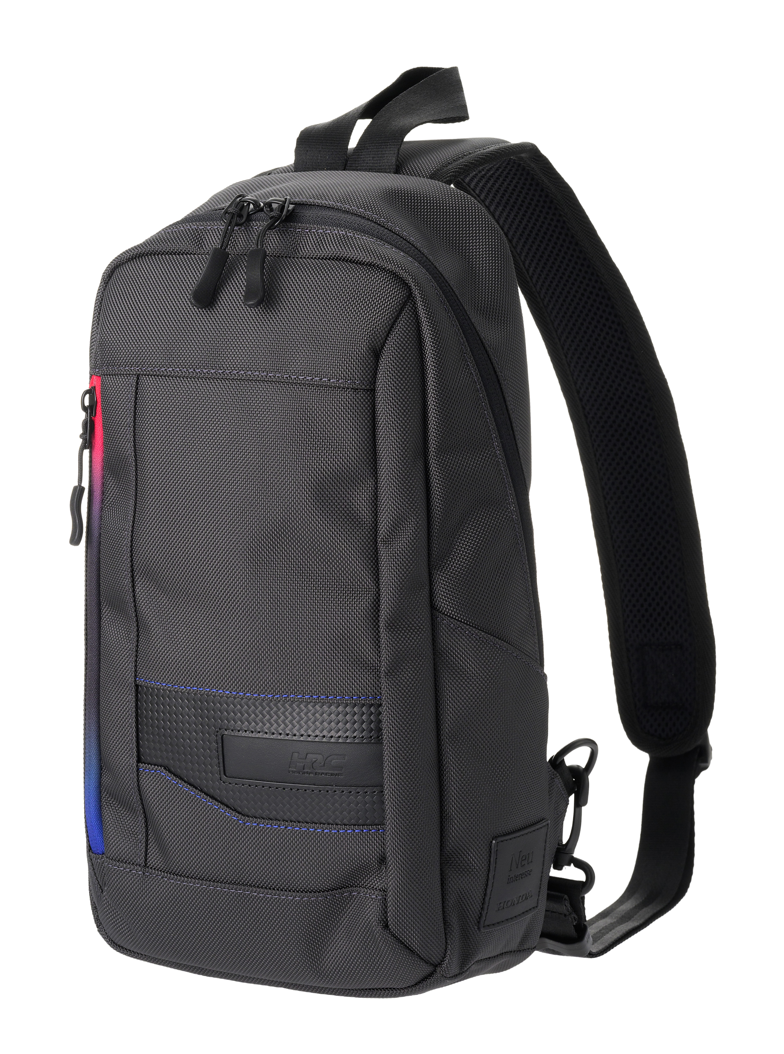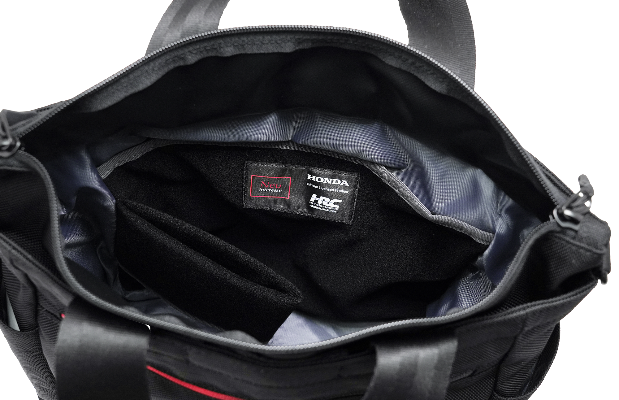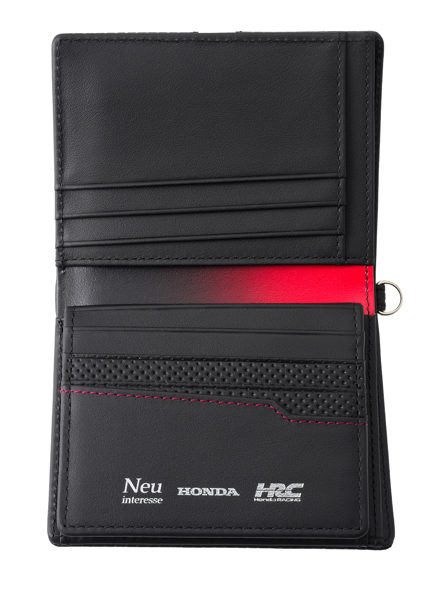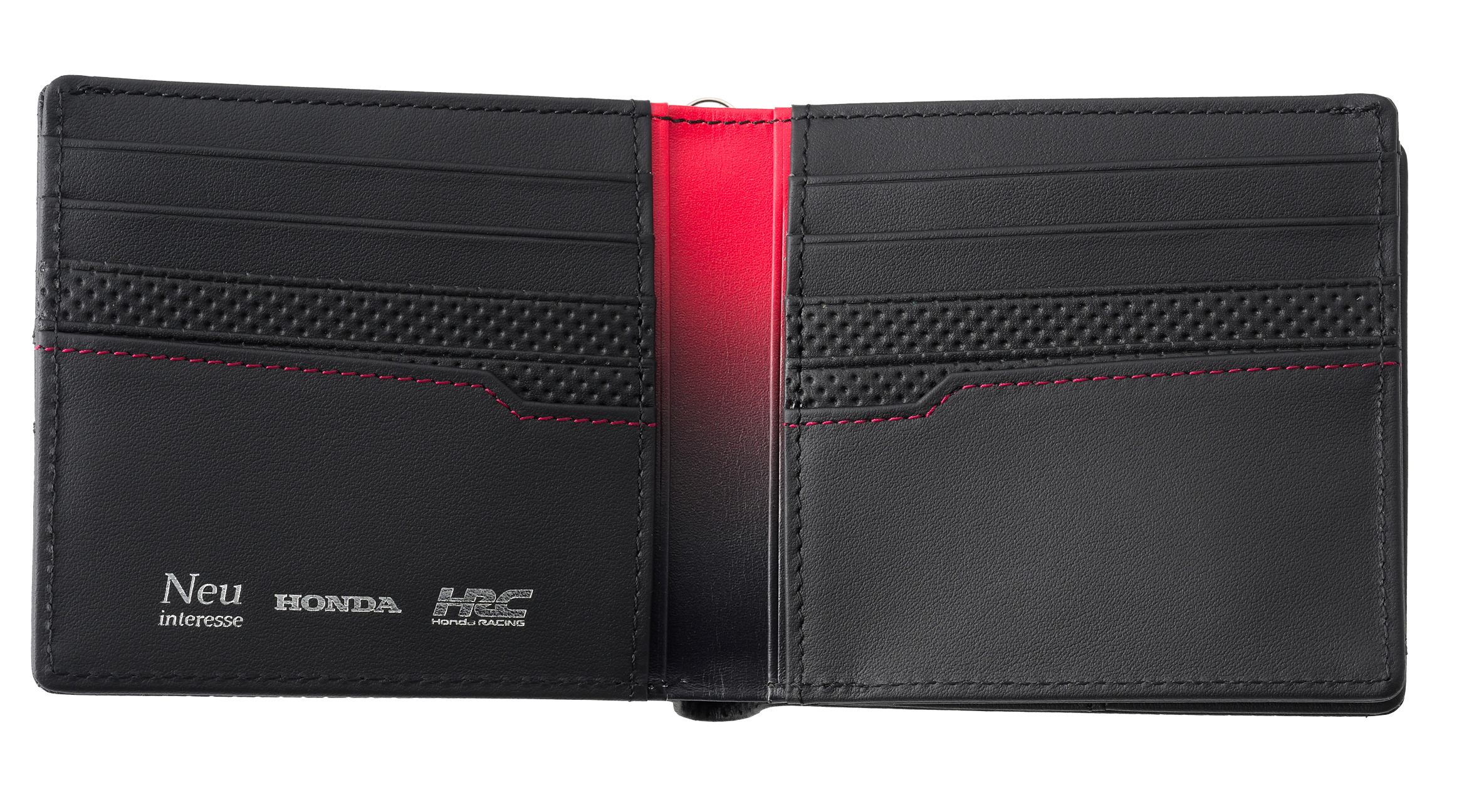 Officially licensed merchandise featuring the HRC logo, a symbol of Honda’s motorsports activities.Through Neu interesse items, the world of Honda driven by a passion for racing is expressed.For the leather items, the main material used is natural vegetable-tanned leather,processed with plant-derived agents by a domestic tannery certified by the Leather Working Group (LWG).Embossing with dimple and carbon patterns creates a refined yet sporty appearance.The selection of materials reflects a commitment to sustainability and environmental consideration.The bags feature a functional, streamlined design enhanced with zippers incorporating gradient prints.Constructed from high-density 1680D polyester with a water-repellent finish, they offer excellent durability and functionality.The gradient elements integrated into each design powerfully express the speed and dynamism of motorsports.