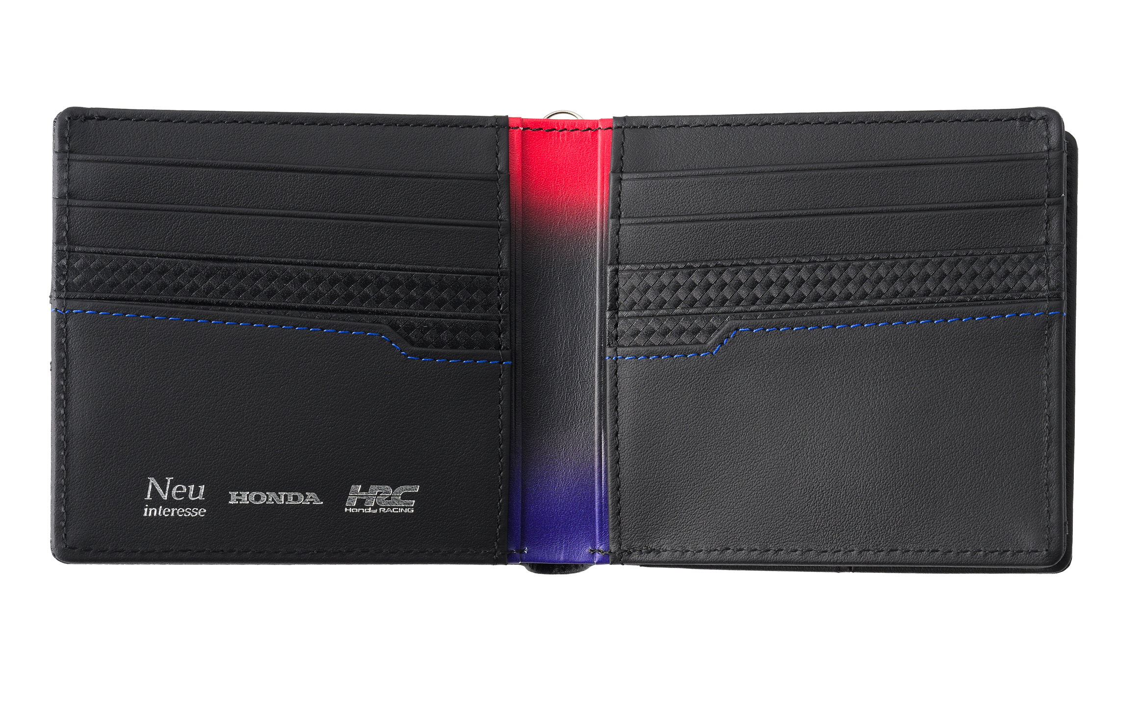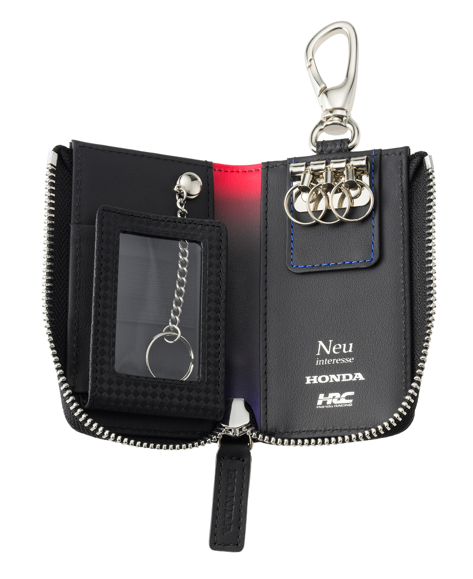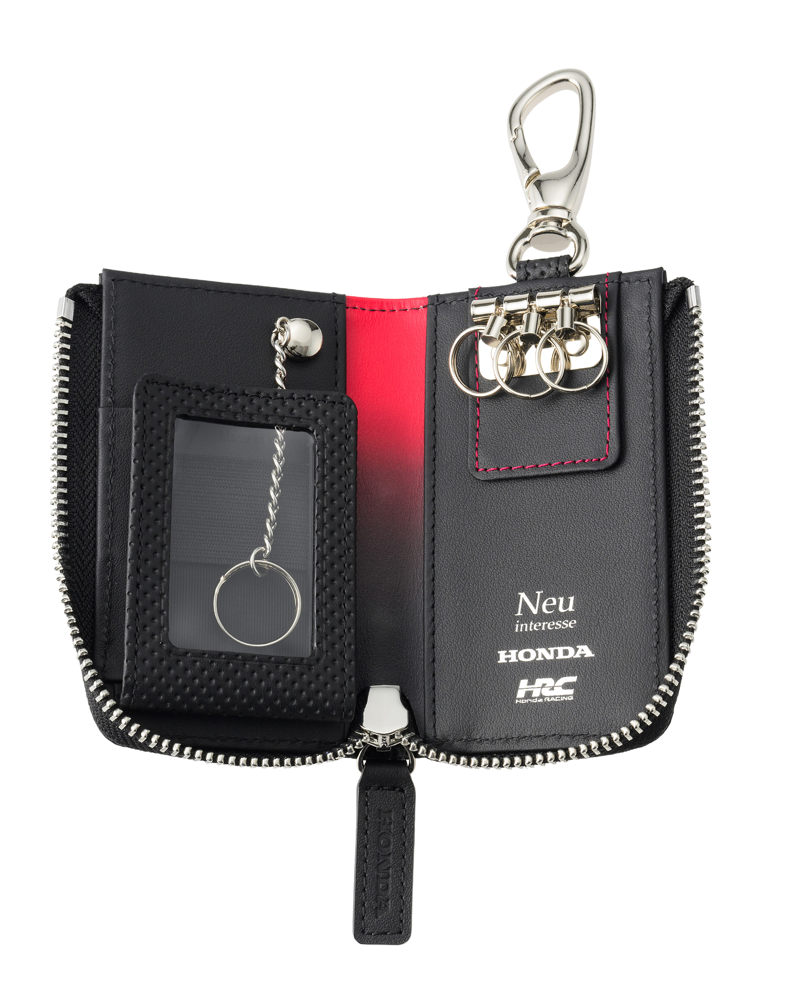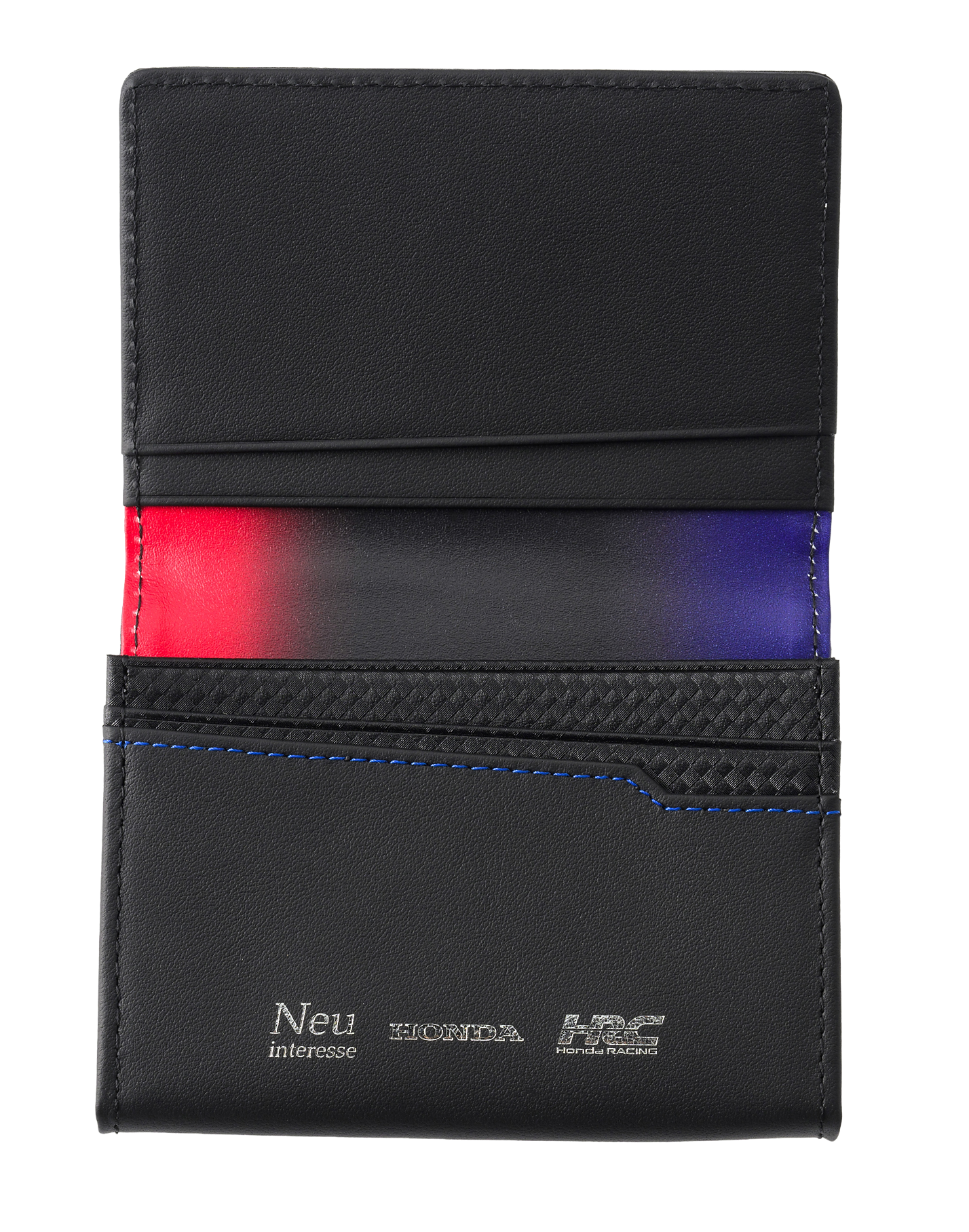 Officially licensed merchandise featuring the HRC logo, a symbol of Honda’s motorsports activities.Through Neu interesse items, the world of Honda driven by a passion for racing is expressed.For the leather items, the main material used is natural vegetable-tanned leather,processed with plant-derived agents by a domestic tannery certified by the Leather Working Group (LWG).Embossing with dimple and carbon patterns creates a refined yet sporty appearance.The selection of materials reflects a commitment to sustainability and environmental consideration.The bags feature a functional, streamlined design enhanced with zippers incorporating gradient prints.Constructed from high-density 1680D polyester with a water-repellent finish, they offer excellent durability and functionality.The gradient elements integrated into each design powerfully express the speed and dynamism of motorsports.