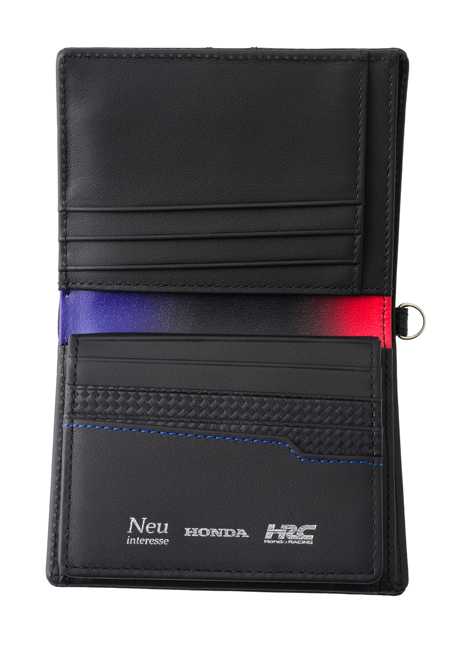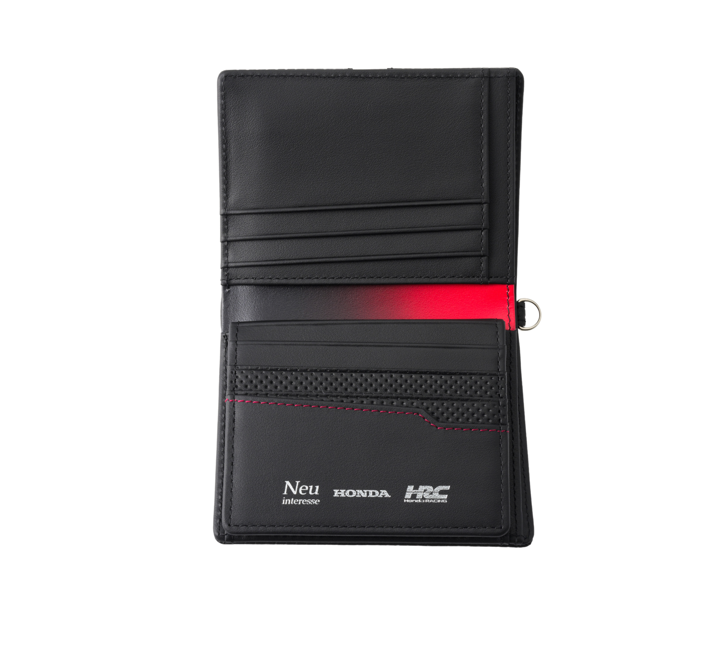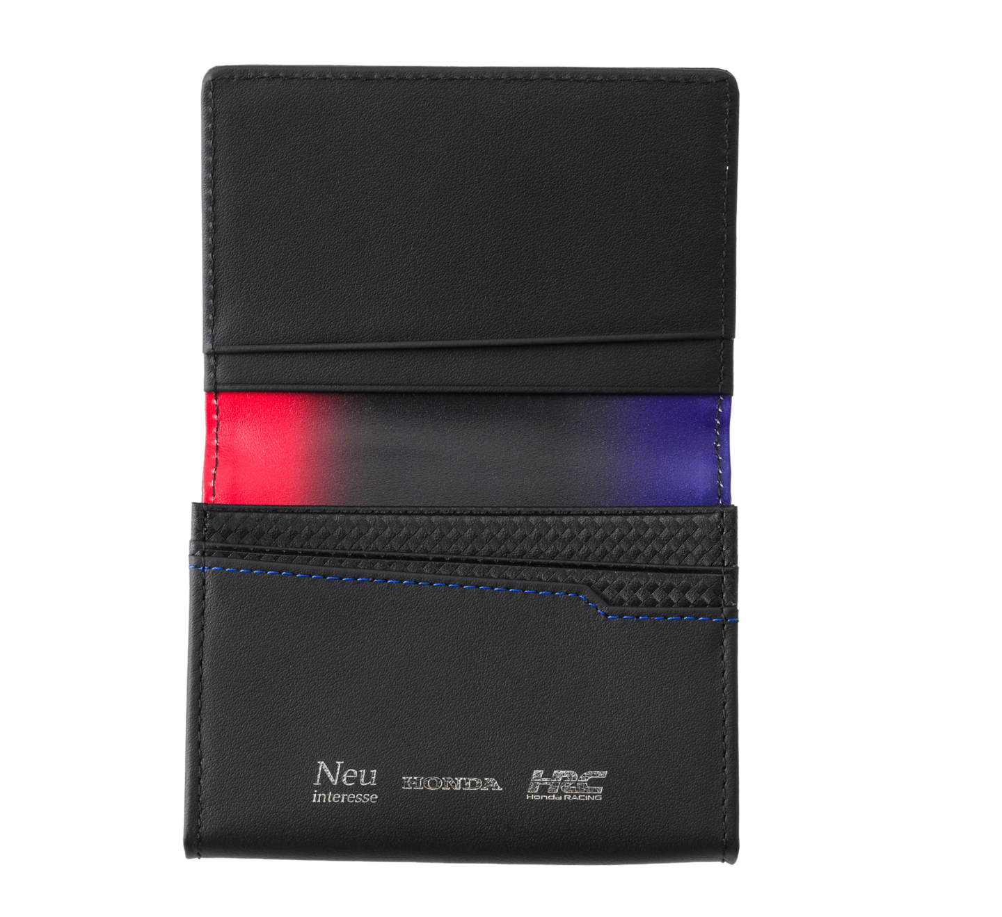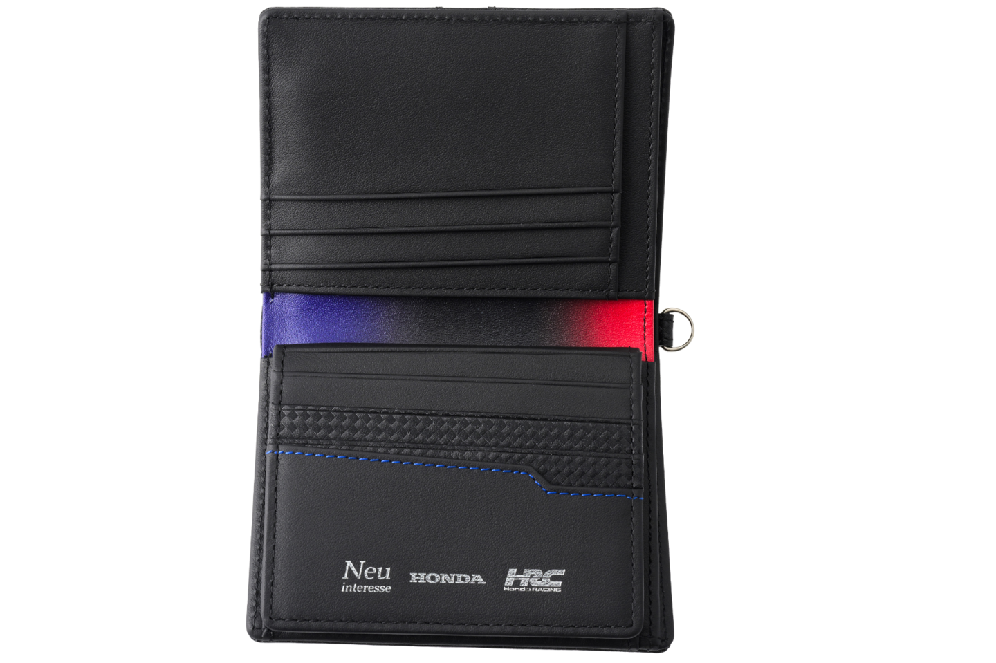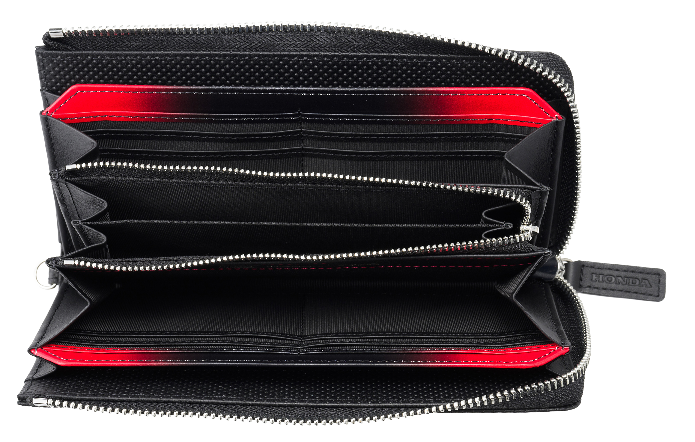 Officially licensed merchandise featuring the HRC logo, a symbol of Honda’s motorsports activities.Through Neu interesse items, the world of Honda driven by a passion for racing is expressed.For the leather items, the main material used is natural vegetable-tanned leather,processed with plant-derived agents by a domestic tannery certified by the Leather Working Group (LWG).Embossing with dimple and carbon patterns creates a refined yet sporty appearance.The selection of materials reflects a commitment to sustainability and environmental consideration.The bags feature a functional, streamlined design enhanced with zippers incorporating gradient prints.Constructed from high-density 1680D polyester with a water-repellent finish, they offer excellent durability and functionality.The gradient elements integrated into each design powerfully express the speed and dynamism of motorsports.