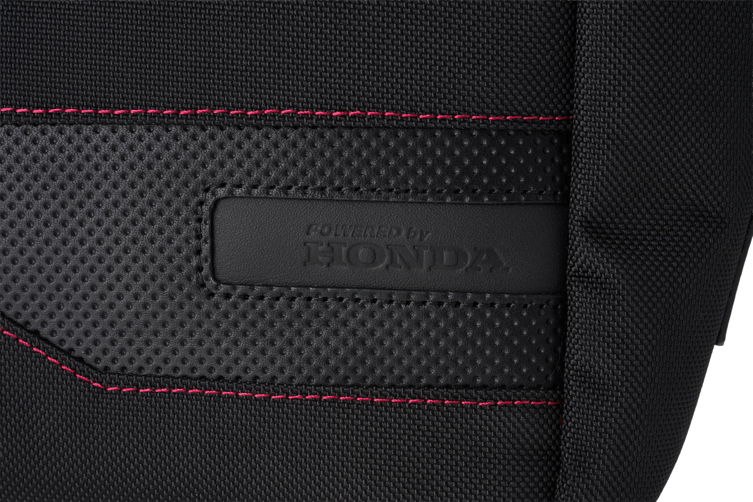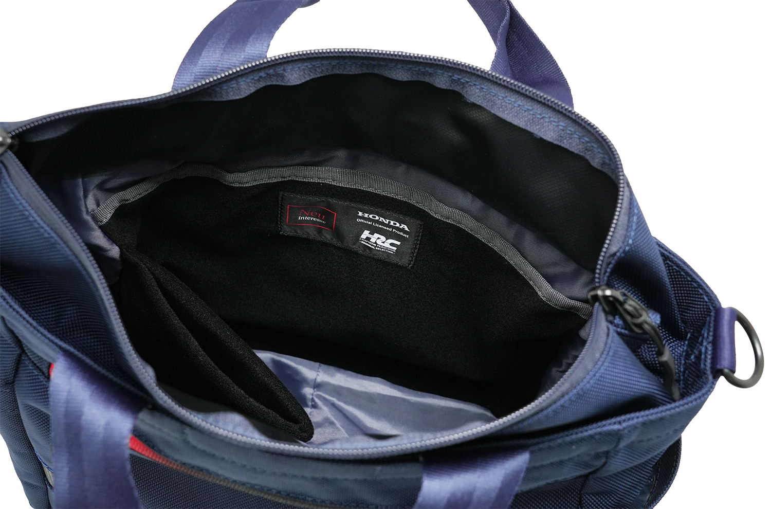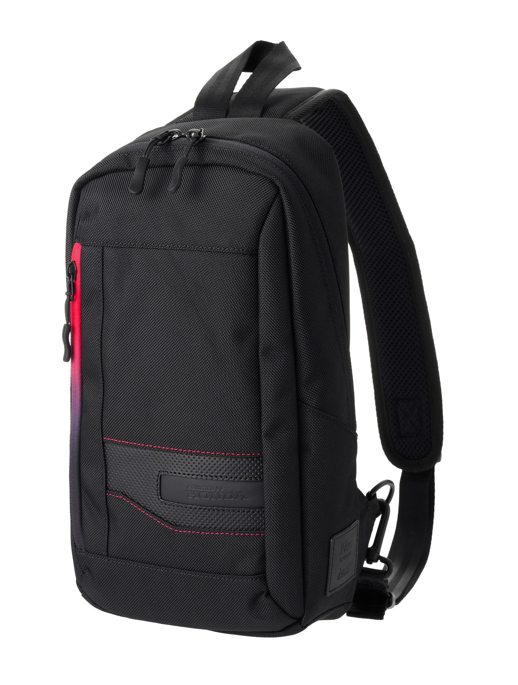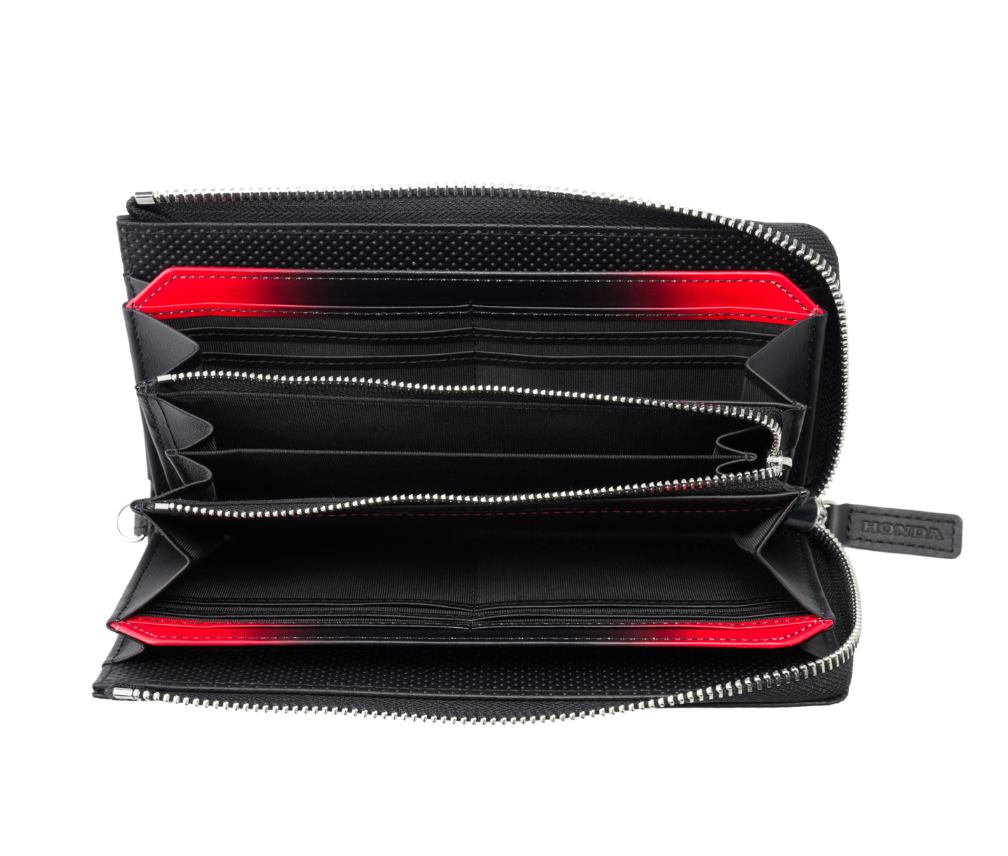 Officially licensed merchandise featuring the HRC logo, a symbol of Honda’s motorsports activities.Through Neu interesse items, the world of Honda driven by a passion for racing is expressed.For the leather items, the main material used is natural vegetable-tanned leather,processed with plant-derived agents by a domestic tannery certified by the Leather Working Group (LWG).Embossing with dimple and carbon patterns creates a refined yet sporty appearance.The selection of materials reflects a commitment to sustainability and environmental consideration.The bags feature a functional, streamlined design enhanced with zippers incorporating gradient prints.Constructed from high-density 1680D polyester with a water-repellent finish, they offer excellent durability and functionality.The gradient elements integrated into each design powerfully express the speed and dynamism of motorsports.